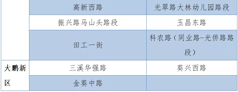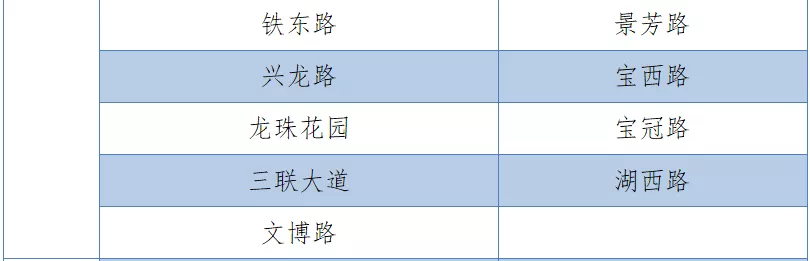 具體設(shè)置路段請看表格