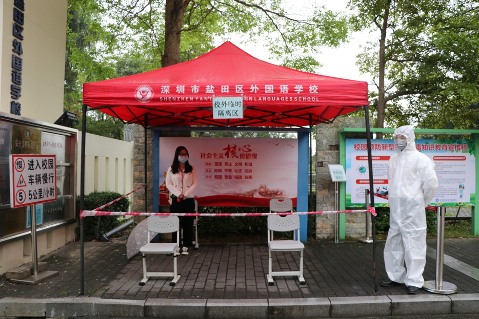 鹽田區(qū)外國語學校嚴格按照相關(guān)要求,制定了“一人一卡”師生健康監(jiān)測記錄表,對全體師生員工包括聘用人員開學前14天健康狀況和行動軌跡進行全面排查。此外制定了《鹽田區(qū)外國語學校防控復學工作方案》《鹽田區(qū)鹽國語學校疫情防控應急處置方案》,并于3月30日至31日開展了防控培訓和應急演練,確保人人知流程、崗崗懂處理。