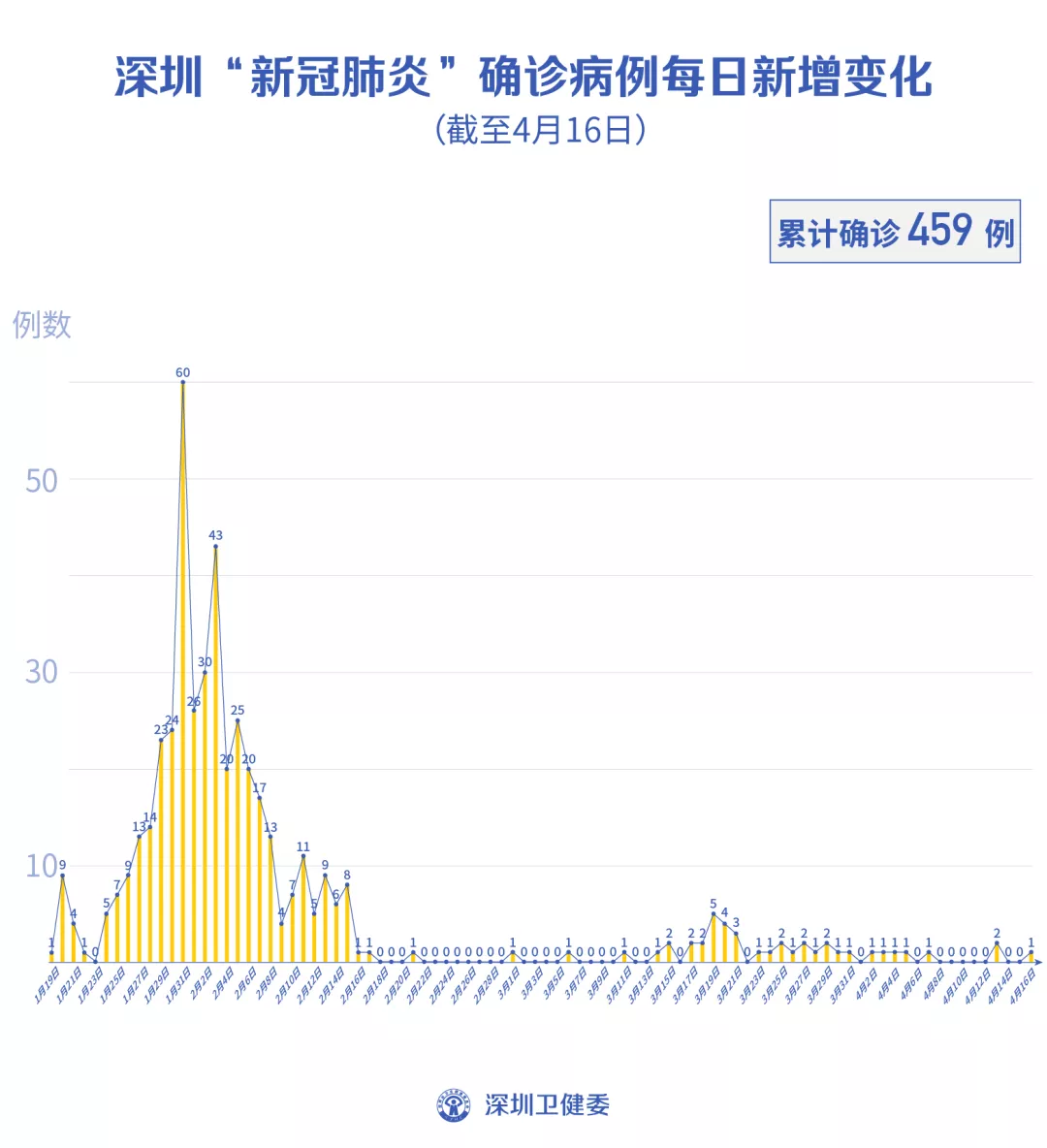 截至4月16日24時,深圳累計報告新冠肺炎病例459例。4月16日當天新增境內(nèi)病例1例,新增無癥狀感染者1例。