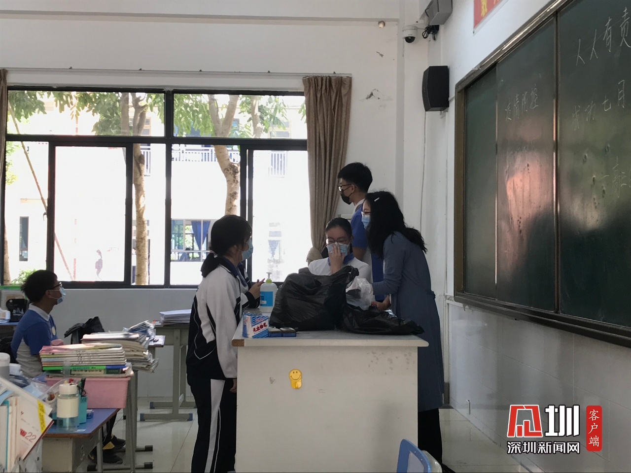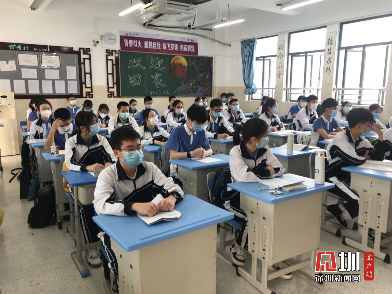 揮揮手、點頭致敬、有默契地保持間距隊型……記者觀察到,返校復課第一天,深圳市高三、初三學生雖然面臨著即將到來的高考、中考壓力,從許多戴著口罩的人臉上還是看到了洋溢著青春、朝氣、信心的眼神。教學樓里各個教室都敞開了門窗,學生們對號入座、整理好學習用品后,自覺地坐下來安靜自習、靜待上課。