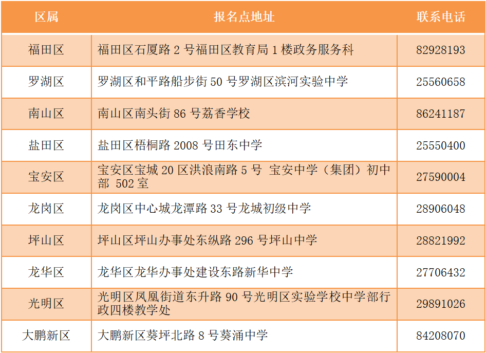 見圳客戶端·深圳新聞網(wǎng)2020年4月30日訊 據(jù)深圳市教育局消息,2020年深圳高中階段學(xué)校招生考試(以下簡(jiǎn)稱“中考”)報(bào)名定于5月6日-15日進(jìn)行,考試時(shí)間為7月20日-21日。 今年本市應(yīng)屆初中畢業(yè)生仍繼續(xù)在就讀學(xué)校集體辦理報(bào)名手續(xù)。符合深圳中考報(bào)名條件的深圳戶籍往屆生、在市外就讀的深圳戶籍應(yīng)屆初中畢業(yè)生(以下簡(jiǎn)稱“社會(huì)類考生”)采用網(wǎng)上報(bào)名方式進(jìn)行報(bào)名。 報(bào)名條件 一、具有我市戶籍的初中畢業(yè)生,可以在我市報(bào)名參加中考。 二、具有我市初三學(xué)籍的隨遷子女可以報(bào)名參加中考,同時(shí)符合以下條件的,可以參加相應(yīng)的公辦普高、民辦普高和中職學(xué)校的劃線錄取。 (一)父親或母親在我市具有合法穩(wěn)定職業(yè); (二)父親或母親在我市具有合法穩(wěn)定住所; (三)父親或母親持有有效《深圳經(jīng)濟(jì)特區(qū)居住證》; (四)父親或母親在我市繳納基本養(yǎng)老保險(xiǎn)及基本醫(yī)療保險(xiǎn),且至少其中一個(gè)險(xiǎn)種累計(jì)繳費(fèi)滿3年,社保累計(jì)年限計(jì)算截至2020年8月31日; (五)隨遷子女在我市具有3年完整初中學(xué)籍。 不符合上述條件但具有我市初中學(xué)籍的隨遷子女,可以在我市參加中考,但僅限于參加民辦普高補(bǔ)錄或中職學(xué)校注冊(cè)入學(xué)。 三、高中階段學(xué)校在校生不得報(bào)名。 本市應(yīng)屆初中畢業(yè)生報(bào)名辦法 本市應(yīng)屆初中畢業(yè)生于5月6日至7日在就讀學(xué)校集體辦理報(bào)名手續(xù)。 今年中考繼續(xù)實(shí)行網(wǎng)上報(bào)名。要求各學(xué)校開放計(jì)算機(jī)房,為本校考生上網(wǎng)報(bào)名提供方便。 5月8日至15日,學(xué)校組織考生進(jìn)行電子攝像,學(xué)校和考生分別上網(wǎng)錄入報(bào)名信息,考生錄入信息可參考“考生錄入信息流程圖”進(jìn)行操作。 市教育局強(qiáng)調(diào),學(xué)校不得以任何理由拒絕有本校學(xué)籍的應(yīng)屆畢業(yè)生報(bào)考(參加中職學(xué)校自主招生、注冊(cè)入學(xué)的考生,也須報(bào)名參加中考)。如有違反者,將嚴(yán)肅查處,并追究相關(guān)人員責(zé)任。同時(shí)要求各區(qū)有關(guān)職能部門、各有關(guān)學(xué)校(報(bào)名點(diǎn))要嚴(yán)格審查報(bào)名材料。對(duì)不符合報(bào)名條件、弄虛作假而被錄取的考生,一經(jīng)發(fā)現(xiàn),取消其錄取資格;已經(jīng)到錄取學(xué)校報(bào)到注冊(cè)的,取消其學(xué)籍,并追究相關(guān)人員責(zé)任。 社會(huì)類考生報(bào)名辦法 社會(huì)類考生采用網(wǎng)上報(bào)名方式進(jìn)行報(bào)名。報(bào)名考生需在5月6日至15日登錄報(bào)名網(wǎng)址(http://www.szzk.edu.cn/),按照提示進(jìn)行網(wǎng)上注冊(cè),上傳報(bào)名審核資料,由考生戶籍所在區(qū)社會(huì)報(bào)名點(diǎn)進(jìn)行線上審核,審核通過后系統(tǒng)將生成中考考生號(hào)及初始密碼,考生需用獲取的考號(hào)及密碼登錄中考中招管理系統(tǒng),填寫個(gè)人信息,具體操作可參考“考生錄入信息流程圖”。同時(shí)需在報(bào)名截止前根據(jù)指引完成網(wǎng)上繳費(fèi)。 若考生網(wǎng)上報(bào)名審核不通過,需按照系統(tǒng)的不通過原因提示,重新補(bǔ)充審核資料,如多次上傳資料失敗或?qū)徍瞬煌ㄟ^,考生可撥打戶籍所在區(qū)的社會(huì)報(bào)名點(diǎn)電話進(jìn)行咨詢或電話預(yù)約,按照工作人員指示進(jìn)行操作報(bào)名,不要在未預(yù)約的情況下前往社會(huì)報(bào)名點(diǎn),盡量避免出行,減少人員聚集。 社會(huì)類考生操作流程如下圖: 考生錄入信息操作流程如下圖: 中考社會(huì)報(bào)名點(diǎn)一覽表 深圳各類考生具體報(bào)考范圍、各類升學(xué)資格申報(bào)所需條件和材料以及相關(guān)報(bào)名要求,考生可通過深圳市招生考試辦公室官網(wǎng)(zkb.sz.gov.cn)及官方微信公眾號(hào)(深圳市招生考試辦公室)查閱,市招考辦也將第一時(shí)間通過上述渠道發(fā)布各類中考資訊。