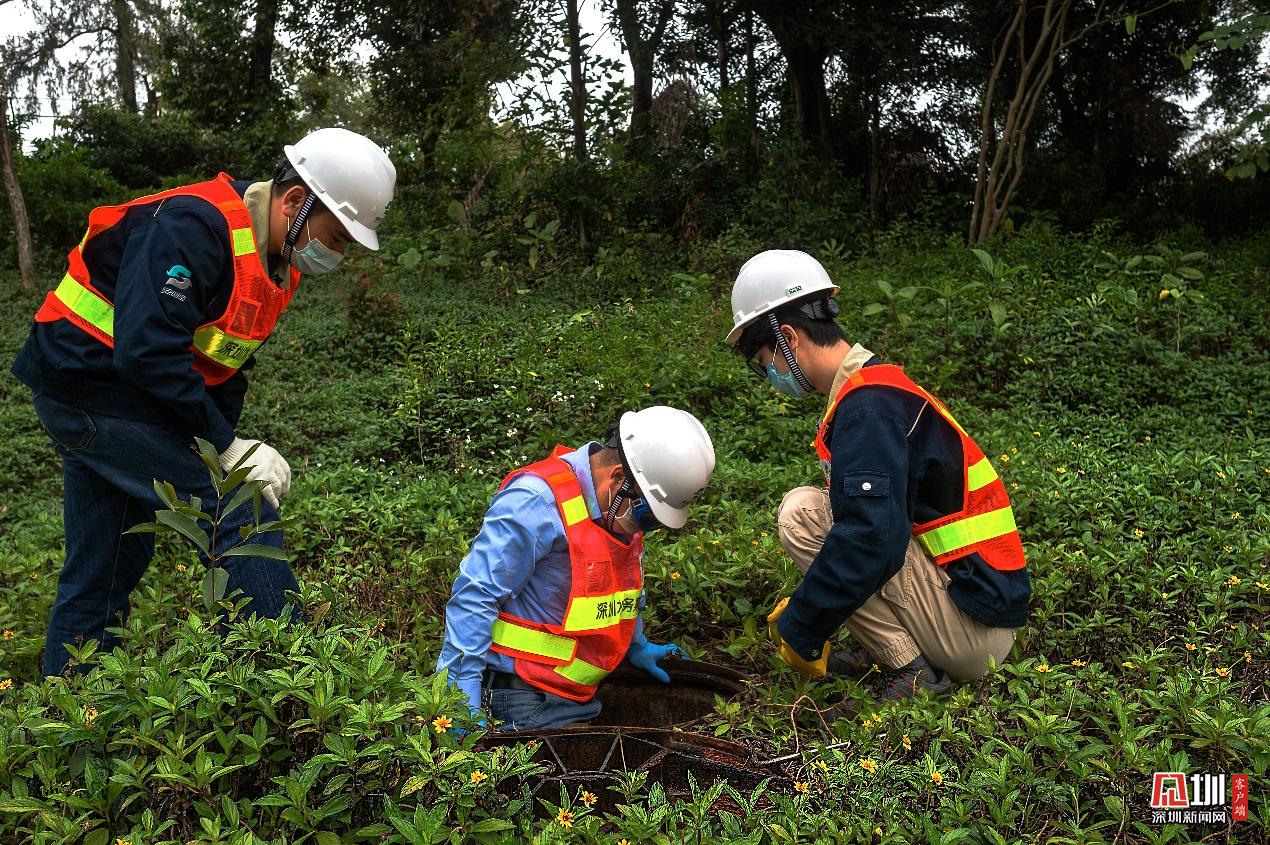 福田分公司巡查工張憶浩、吳暉雄和羅寶斌,正對(duì)福中路的排水管網(wǎng)進(jìn)行細(xì)致排查。身后的烏云,與他們白色的防護(hù)服形成鮮明對(duì)比。