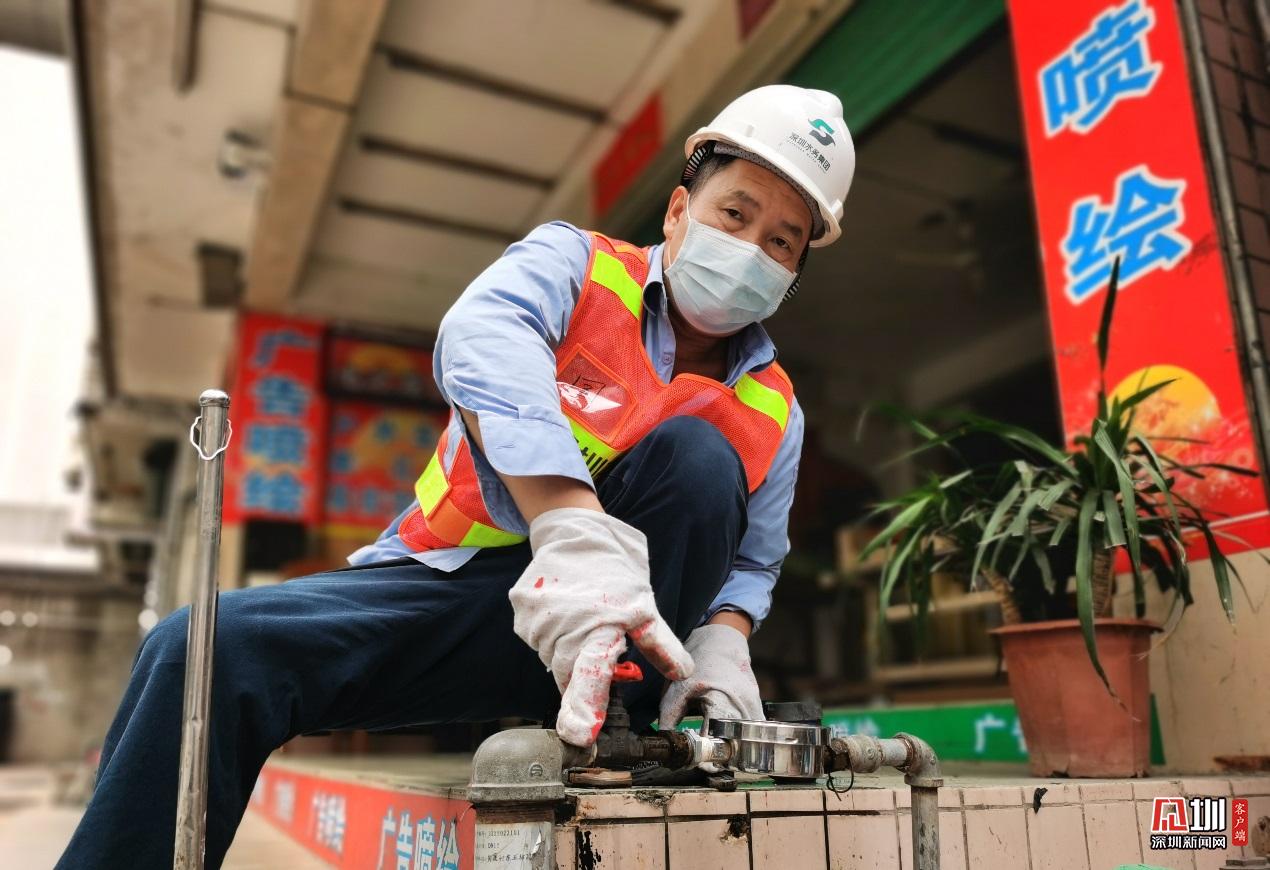 福田分公司福中水務(wù)所維修工陳國(guó)明,正對(duì)水表進(jìn)行關(guān)停,準(zhǔn)備開(kāi)始維修工作。