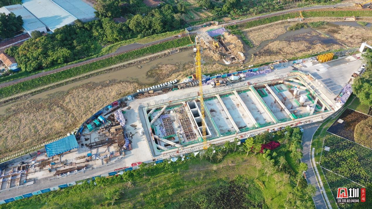 新陂頭干流調(diào)蓄池施工現(xiàn)場。為追趕進(jìn)度,搶抓工期,光明 EPC消黑項目部爭分奪秒,全面向著完工節(jié)點出發(fā)。