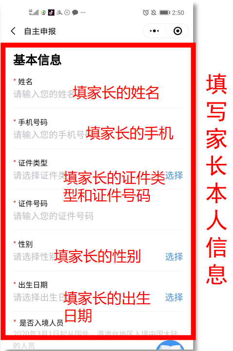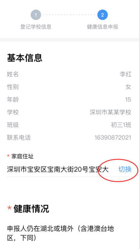 ③完成健康信息申報,包括選擇家庭住址、申報健康情況、填寫監(jiān)護人姓名等,請勾選申報承諾,點擊“生成師生健康碼”即可完成健康申報。