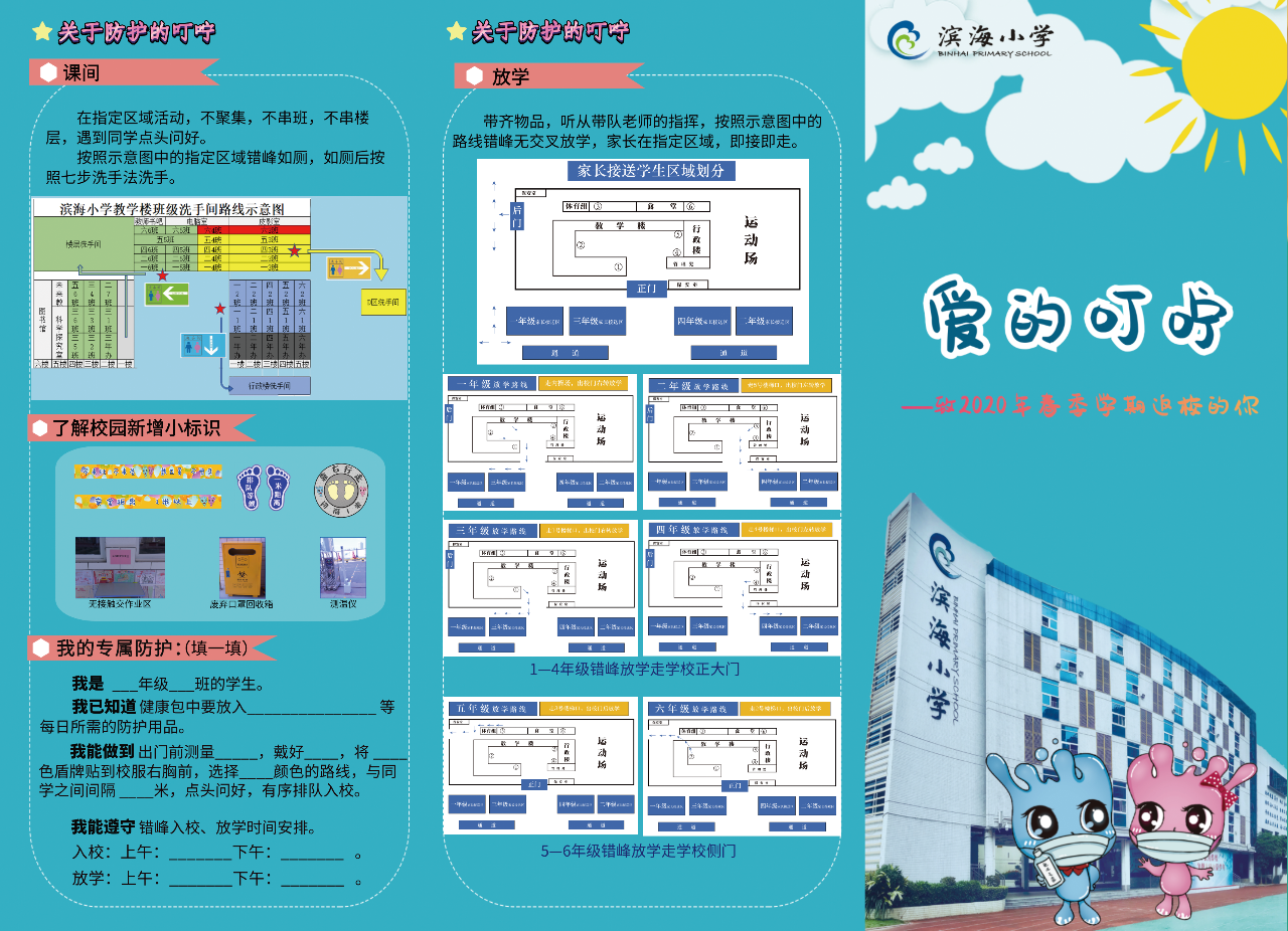 針對(duì)即將返校的學(xué)生,還有一份特別的《叮嚀》,來自李桃輝校長(zhǎng)《愛的叮嚀》,這里有桃輝校長(zhǎng)的暖心留言,還有幫助孩子們適應(yīng)全然不同的校園新生活的各種說明!