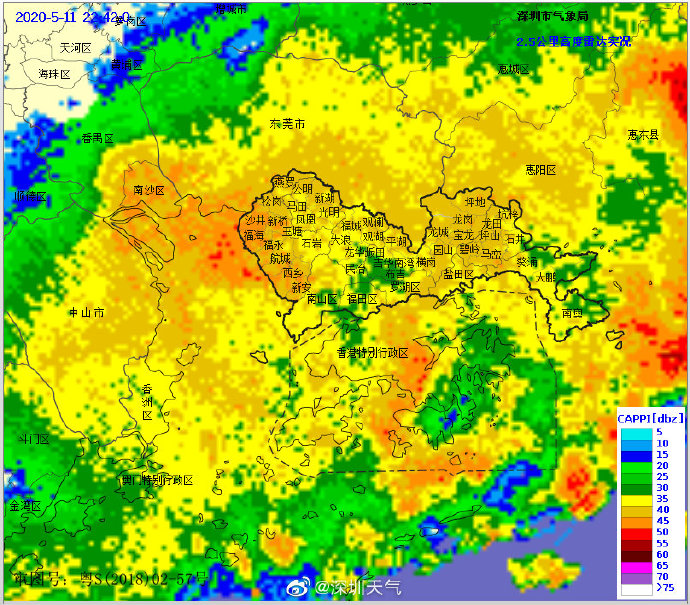 23時32分:【深圳市取消暴雨黃色和大風(fēng)黃色預(yù)警,雷電預(yù)警繼續(xù)生效】強降雨帶已經(jīng)移出我市,市氣象臺于2020年05月11日23時30分在全市取消暴雨黃色、大風(fēng)黃色預(yù)警。全市雷電預(yù)警仍在生效中,未來1-2小時仍有陣雨和零散雷暴,市民仍需注意遠離河道和危險邊坡等。