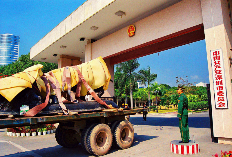 1999年2月6日,深圳“孺子?!钡袼苓w移到深圳市委大院門前。(組圖)(攝影:韋建誠)