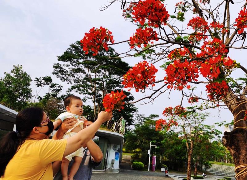 鳳凰木又名火樹、紅花楹,由于其開花時(shí)"葉如飛凰之羽,花若丹鳳之冠",因而得名「鳳凰樹」。每年5月至7月,是鳳凰樹開花的時(shí)節(jié)。在鵬城公園、道路兩旁到處可見鳳凰花盛開,當(dāng)下鳳凰花開正燦爛,錦簇花團(tuán)紅似火,成為鵬城亮麗的風(fēng)景線。圖為龍崗大運(yùn)中心鳳凰樹花開吸引市觀賞拍照。