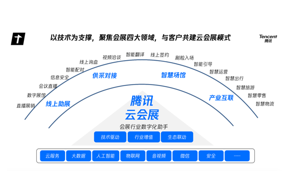 伴隨著云計算、5G、AI、大數(shù)據(jù)等技術的成熟,騰訊已經成為多個大型會展項目提供產品和技術服務,不斷實踐和探索線上線下融合的產品技術及綜合解決方案。騰訊云會展打造的有別于實體觀展模式的新思路和新玩法,包括線上展覽、智慧展會、云展覽等形式,也正為各級政府和企業(yè)激活云上經濟注入新動能。