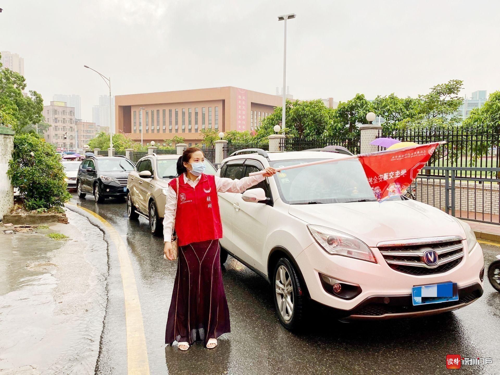龍崗二職開學第一天,傾盆暴雨阻擋不住同學們開學的笑臉。校長、轄區(qū)民警、教師黨員志愿者早早在校門口迎接同學們回“家”。這是闊別三月的重逢,少年歸來依舊春風滿面。