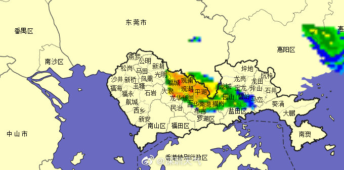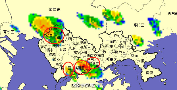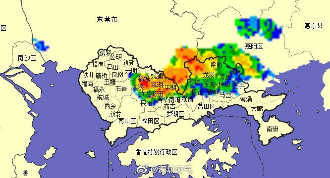 15時(shí)49分:目前降雨云團(tuán)移動(dòng)緩慢,正影響龍崗和龍華地區(qū),請(qǐng)小伙伴們注意防御,盡量減少外出。