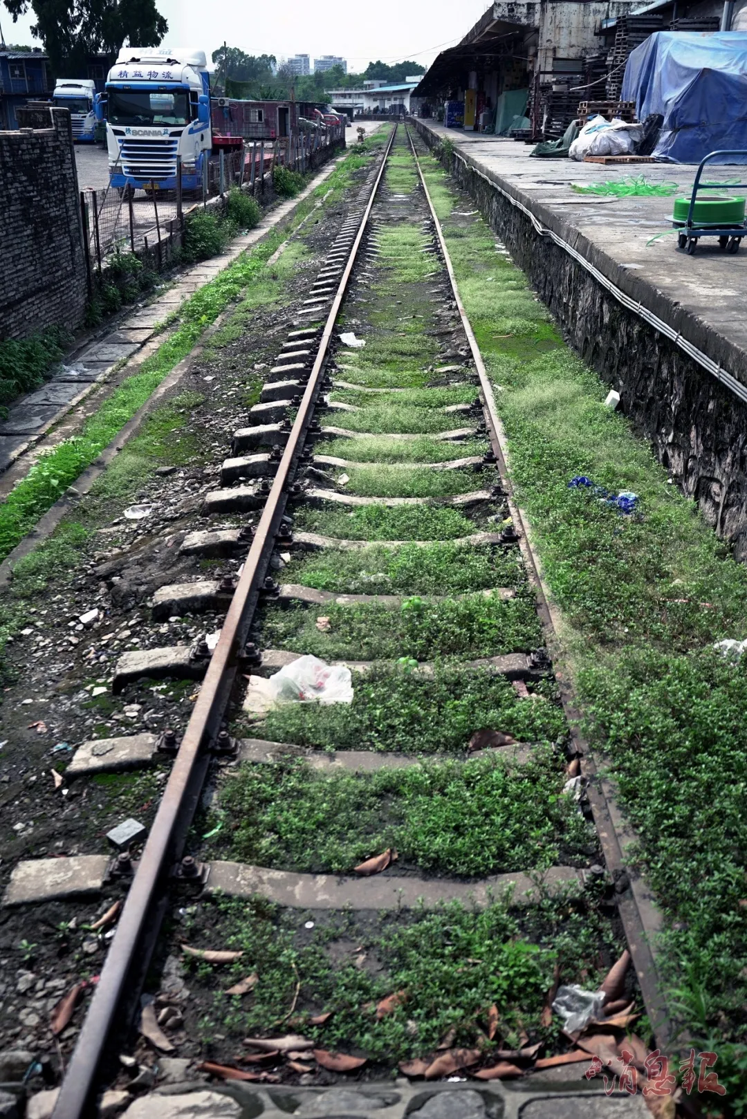 ▲一條貨運(yùn)專線逐漸被綠植覆蓋,好久沒(méi)有列車駛過(guò)。