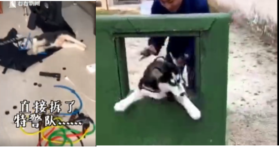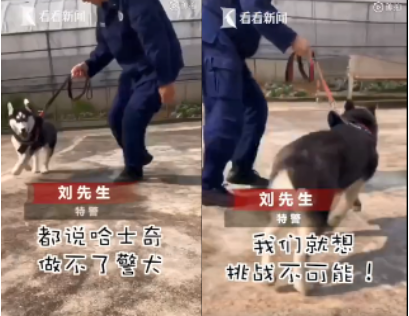 最近,云南某特警隊(duì)和消防隊(duì)的小哥哥想挑戰(zhàn)不可能。于是收養(yǎng)了兩只二哈,一只叫不拆一只叫八萬(wàn),都是有正式編制的警犬。