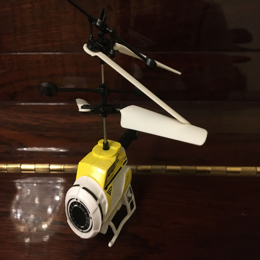 ▲這是我的高科技玩具,感應(yīng)飛行器,它的機(jī)殼上有一個(gè)體外紅外線裝置,使它一碰到物體就能自動(dòng)感應(yīng)到障礙避開飛行。