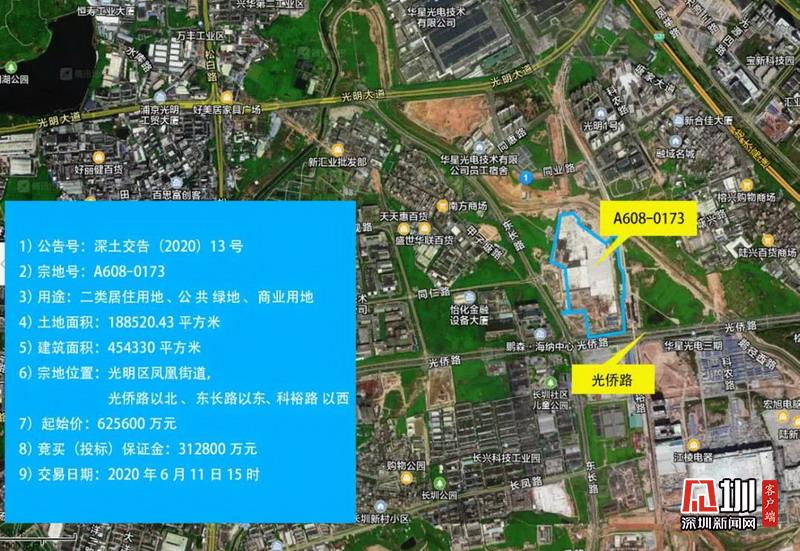 四宗地中,光明A608-0173宗地位于光明區(qū)鳳凰街道光僑路以北、東長(zhǎng)路以東、科裕路以西,土地用途為二類居住用地、公共綠地、商業(yè)用地,土地面積為18.85萬平方米,建筑面積為45.43萬平方米。該地建設(shè)住宅類型為公共租賃住房、只租不售的人才住房和普通商品房,初始配建公共租賃住房和只租不售的人才住房各5萬平方米。項(xiàng)目建成后,普通商品住房最高銷售均價(jià)為4.75萬元/平方米(不含室內(nèi)裝修)。