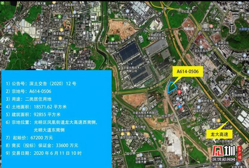 光明A614-0506宗地位于光明區(qū)鳳凰街道龍大高速西南側(cè)、光明大道東南側(cè),土地用途為二類居住用地,起始價(jià)為6.72億元,土地面積為18571.62平方米,建筑面積為9.29萬平方米。該宗地建設(shè)住宅類型為出售的人才住房,項(xiàng)目建成后宗地出售的人才住房銷售基準(zhǔn)售價(jià)不高于2.9萬元/平方米,最高售價(jià)不高于3.05萬元/平方米。