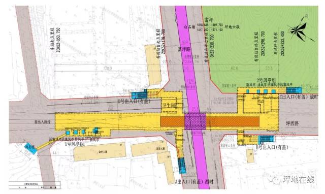 坪西站位于規(guī)劃坪西路與花園路交叉路口,車站沿坪西路設(shè)置。