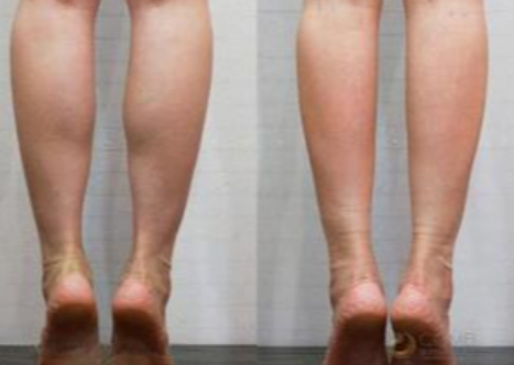 左圖的腓腸?。ā靶⊥榷亲印保┟黠@比右圖腓腸肌發(fā)達,因此左圖的小腿顯得比較粗壯。