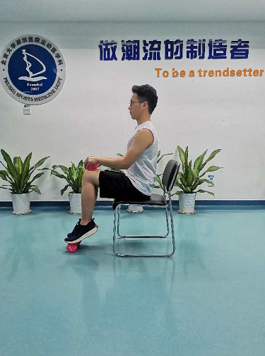 坐姿提踵,坐在椅子上,大腿平行于地面,小腿垂直于大腿,前腳掌置于有一定高度的墊片上,雙手持一合適的重物于膝蓋上;小腿發(fā)力慢抬至最高點(diǎn)保持3秒鐘后慢放至最低點(diǎn)保持3秒鐘,此動(dòng)作重復(fù)30次-50/次×3-5組。