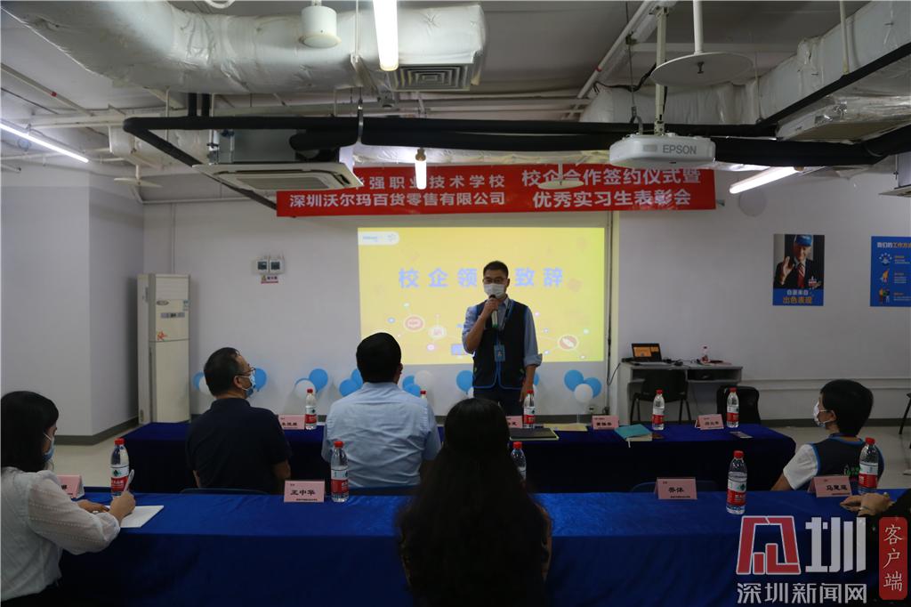 見圳客戶端·深圳新聞網(wǎng)2020年6月24日訊(記者 曹園芳 通訊員 沈琳 喬沐)昨天下午,深圳市華強(qiáng)職業(yè)技術(shù)學(xué)校與深圳沃爾瑪百貨零售公司簽訂校企合作協(xié)議。趙盟校長、朱俊康副校長、西校區(qū)王中華主任、校企合作辦黃琳主任、商貿(mào)部喬沐部長、財經(jīng)部馬慧連副部長、辦公室沈琳老師及學(xué)校優(yōu)秀實(shí)習(xí)生代表出席了簽約儀式暨優(yōu)秀實(shí)習(xí)生表彰會。