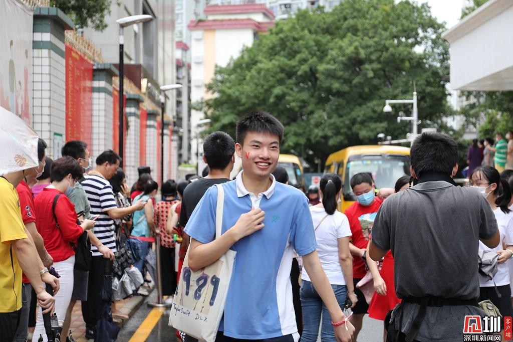 一位考生自信地走出考場,臉上洋溢著笑容。