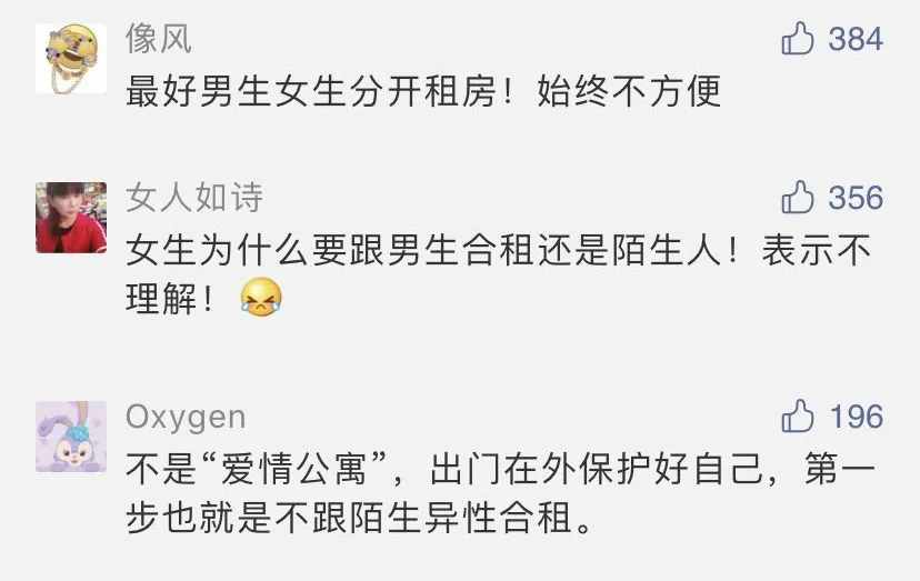 說到合租,請一定要謹(jǐn)慎選擇室友,尤其是男女合租,安全問題不容忽視,凡事多留個心眼,一定要保護好自己。