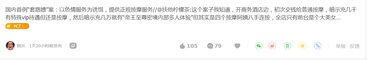 據(jù)報(bào)道,浙江一家SPA俊顏館初次交錢(qián)有普通按摩,暗示客戶充值有特殊服務(wù),實(shí)際上是高級(jí)一點(diǎn)的按摩,再暗示充幾萬(wàn)可享受“帝王至尊密境內(nèi)部多人體驗(yàn)”,其實(shí)就是四個(gè)按摩阿姨八手連按。