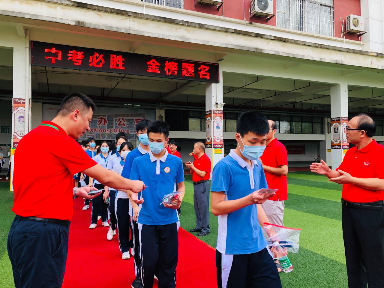龍崗區(qū)金稻田學校的學子們趕往考場前,校長老師們送上了“護考車票”,通往“前程似錦”!目前,學子們在交警的護送下已順利到達考場。(記者李麗