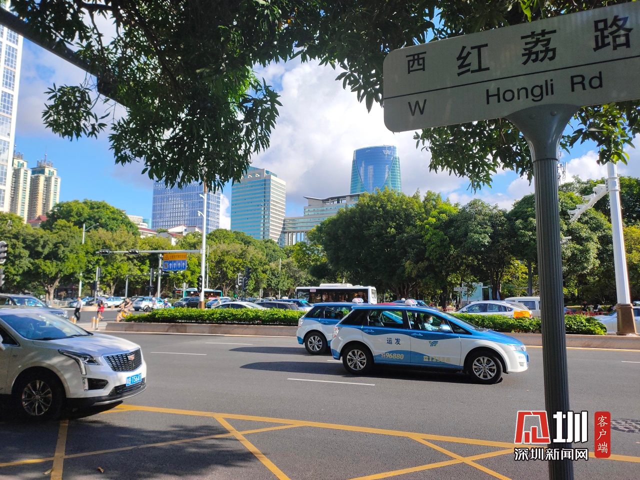 【紅荔路】上午8時(shí),記者在紅荔路和新洲路交匯處拍攝實(shí)時(shí)路況。
