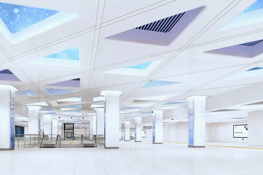 科學(xué)館站位于上步路與深南大道交叉口至濱河大道段,呈南北向布置。與1號(hào)線(xiàn)通道換乘,車(chē)站為地下三層單柱雙跨鋼筋混凝土框架結(jié)構(gòu),共設(shè)出入口6個(gè):E、F,物業(yè)口1、2、3、4。此外,與1號(hào)線(xiàn)換乘通道。