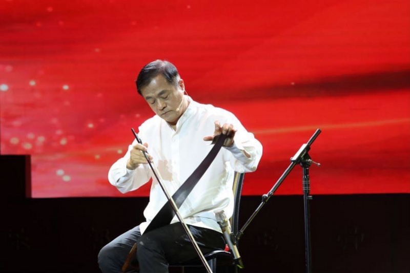 隨后,《鋸琴藝術(shù)》傳承人李元慶在不斷變換鋸片彎曲角度、拉動(dòng)馬尾弓期間,奏出一首長(zhǎng)達(dá)近4分鐘的悠揚(yáng)樂(lè)曲。他說(shuō),自己拉了30年鋸琴,希望讓更多人了解這門(mén)非遺藝術(shù)。在他的鼓勵(lì)下,觀眾席里兩名小學(xué)生舉手上臺(tái),用鋸琴敲出長(zhǎng)短不一的音符。