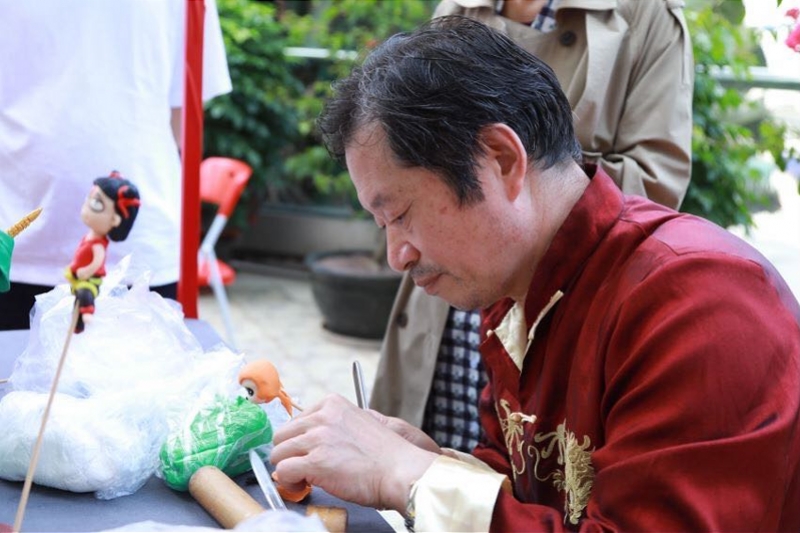 另一方面,活動(dòng)還設(shè)有非遺集市,《王氏面塑》《楊氏中國(guó)結(jié)》《田氏剪紙》《聶氏麥稈畫(huà)》《臉譜面具繪畫(huà)》《糖畫(huà)》等一批傳統(tǒng)藝術(shù)項(xiàng)目傳承人來(lái)到現(xiàn)場(chǎng),亮出“看家本領(lǐng)”制作藝術(shù)品,吸引不少市民到場(chǎng)學(xué)藝。