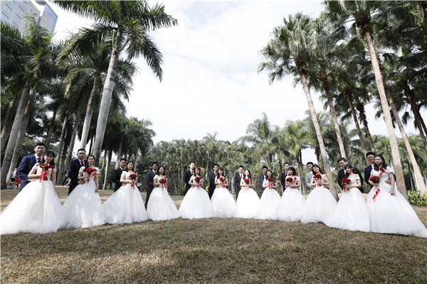 銀婚老人為12對新人頒發(fā)結(jié)婚證