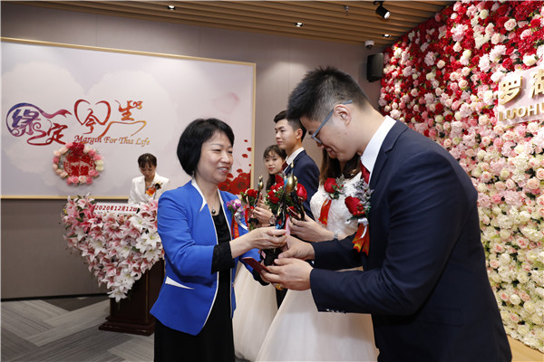 據(jù)悉,結(jié)婚登記頒證儀式是羅湖區(qū)民政局為了推崇簡約適度、文明向上的婚俗禮儀,倡導健康家庭倫理、婚姻文化、文明婚俗,培育好家風、傳承好家風,為結(jié)婚新人提供的免費服務。