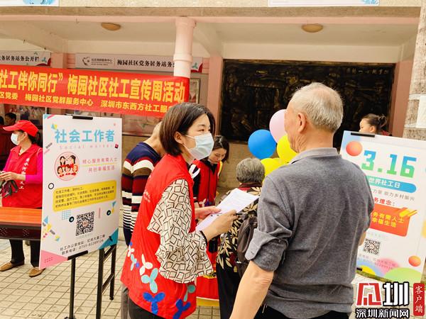 見圳客戶端· 深圳新聞網(wǎng)3月16日訊(記者 郭含笑 實(shí)習(xí)生 覃鈺清 通訊員 李珍鳳 張亮亮)為進(jìn)一步提高社會工作的影響力,樹立社會工作專業(yè)形象,3月16日下午,深圳市清水河街道梅園社區(qū)黨委、深圳市東西方社工服務(wù)社駐梅園社區(qū)黨群服務(wù)中心的社工開展了“幸福梅園 社工伴你同行”社工宣傳周活動。