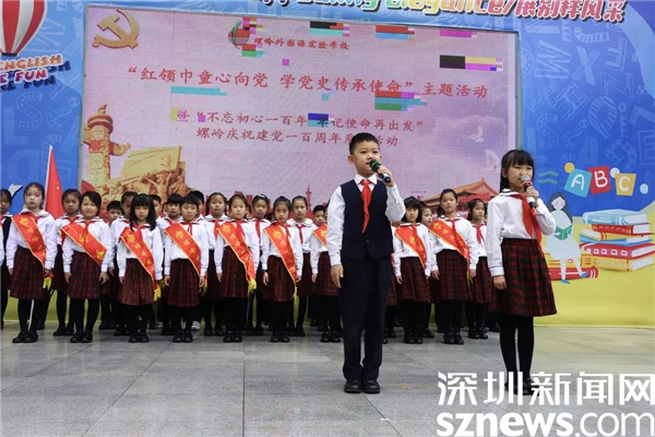 據(jù)了解,深圳市螺嶺外國語實驗學(xué)校從2020年10月就持續(xù)開展形式多樣的黨史學(xué)習(xí)教育進校園,其中包含“大手拉小手、黨史進課堂”黨員教師宣講黨史隊會課、“紅領(lǐng)巾童心向黨,學(xué)黨史傳承使命”全體師生升旗課程、“大手拉小手、共學(xué)黨隊史”大隊委宣講黨史隊史隊知識等。
