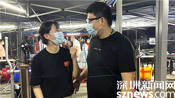6月20日下午,在深圳市羅湖區(qū)東湖街道布心花園的核酸檢測點,正緊鑼密鼓地進行核酸檢測。李忠麗是醫(yī)護人員隊伍中的一員,由于高溫暑熱,又處在高強度的工作下,李忠麗突然感覺身體不適、呼吸困難、頭暈目眩。任雨則在第一時間發(fā)現(xiàn)李忠麗身體有恙,上前查看其身體狀況并詢問情況。“哪里不舒服?感覺怎么樣?”任雨心急如焚地問道。李忠麗虛弱得答不上話,立即被扶至一旁進行休息,并服用了兩瓶藿香正氣水。經過一段時間的休息,李忠麗的身體狀況得到了緩解。