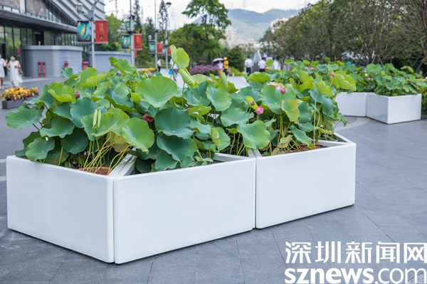 據(jù)介紹,街區(qū)以“花樣水貝、紅荷傳情”為主題,提取荷花、蓮葉等造型元素,應用多品種荷花打造藝術(shù)花境,充分展現(xiàn)荷花的藝術(shù)之美、文化之美。圍繞水貝壹號、水貝金座、水貝銀座、水貝國際等商圈建筑設(shè)置有紅荷傳情、荷葉青青、荷你藕遇、鉆石蓮心、荷荷美美、映日荷花等景點。