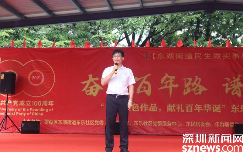 讀特客戶端·深圳新聞網(wǎng)2021年7月30日訊(見習(xí)記者 邱婕 通訊員 黃小花)百年征程波瀾壯闊、百年初心歷久彌堅(jiān)、百年成就催人奮進(jìn)、百年歌聲唱響今天。7月30日上午,“百幅紅色作品,獻(xiàn)禮百年華誕”東樂社區(qū)建黨100周年慶?;顒?dòng)在東樂花園文化廣場(chǎng)舉行。東湖街道黨工委副書記、辦事處主任劉慧堅(jiān),黨工委副書記、人大工委主任謝統(tǒng)敏,東湖街道二級(jí)調(diào)研員、東樂社區(qū)第一書記曾列文,東湖街道辦事處副主任李民,羅湖區(qū)退役軍人事務(wù)局副局長(zhǎng)何朝陽,東樂社區(qū)黨委書記劉芳,東樂社區(qū)社工與義工及廣大居民朋友400余人參與此次活動(dòng)。