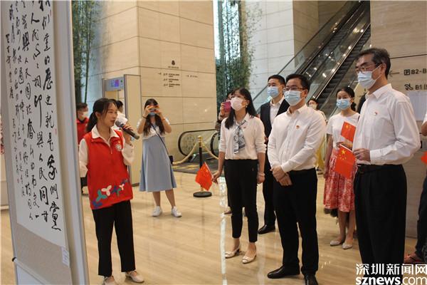 展覽活動(dòng)以深圳市人大代表?xiàng)顦?lè)高歌一曲《春天的故事》拉開(kāi)了序幕,兩位黨史講解員也是老圍社區(qū)年輕的黨員代表,她們以中國(guó)共產(chǎn)黨百年歷史紅色基因傳遞者的身份,以聲情并茂的講解,將與會(huì)人員帶到一排排精美的字畫(huà)前。從紅船開(kāi)始到百年華誕,從東江縱隊(duì)精神至今日全民抗疫,還有40年深圳改革開(kāi)放的日新月異,無(wú)不記錄了百年黨史每一個(gè)階段的精彩瞬間,每一幅作品都令人難忘。