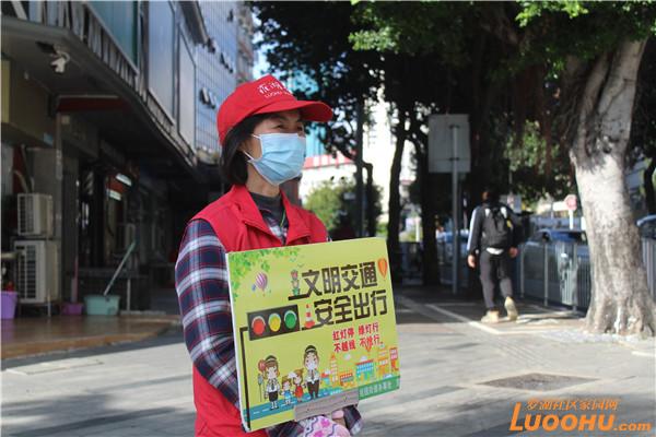據(jù)了解,老圍社區(qū)黨委將創(chuàng)建文明城市納入常態(tài)化工作之中,黨群服務(wù)中心的社工迅速組建了創(chuàng)文小分隊(duì),長(zhǎng)期堅(jiān)守在紅寶路和寶安南路的十字路口勸導(dǎo)交通。這是一條繁忙的十字路口,前有桂園小學(xué),后有盒馬超市,左邊是京基100寫(xiě)字樓,右邊是地王大廈,周?chē)际蔷用褡≌^(qū),每天車(chē)水馬龍,行人如織。尤其上班早高峰,路口更是熙來(lái)攘往川流不息。志愿者們守在路口,全神貫注,時(shí)刻留意那些準(zhǔn)備闖紅燈的騎行者,不走斑馬線的行人,勸導(dǎo)他們遵守交通規(guī)則,保障正常的交通秩序。