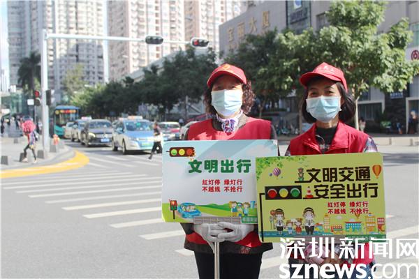 讀特客戶(hù)端·深圳新聞網(wǎng)2021年11月9日訊(記者 劉嘉敏 通訊員 楊紀(jì)歐)11月8日早晨,深圳明顯降溫,出行的市民紛紛穿上了厚衣御寒。身穿紅馬甲的義工,手舉“文明出行”的指示牌,在四面迎風(fēng)的路口執(zhí)勤,勸導(dǎo)市民文明出行,營(yíng)造安全有序暢通的交通環(huán)境,維護(hù)相互禮讓的文明社會(huì)風(fēng)尚。他們不畏寒風(fēng),積極投身文明城市創(chuàng)建,踐行“奉獻(xiàn)、有愛(ài)、互助、進(jìn)步”的志愿服務(wù)精神,讓志愿服務(wù)之火,點(diǎn)亮城市文明之光。他們是羅湖區(qū)桂園街道老圍社區(qū)創(chuàng)文小分隊(duì)的志愿者,同時(shí),他們也是萬(wàn)象城U站的義工。