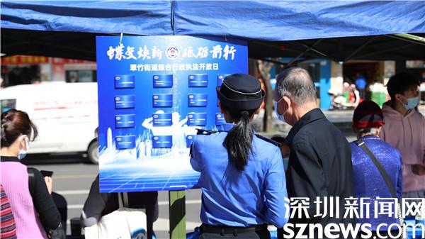 當(dāng)天活動(dòng)現(xiàn)場(chǎng),翠竹街道辦事處副主任、綜合行政執(zhí)法辦公室主任黎雄軒向市民展示街道一年來的執(zhí)法工作成果及下一步的工作計(jì)劃,并呼吁市民朋友以主人翁的姿態(tài)積極參與街道城市管理工作,為打造干凈、整潔、有序、文明的城區(qū)環(huán)境貢獻(xiàn)自己的一份力量。