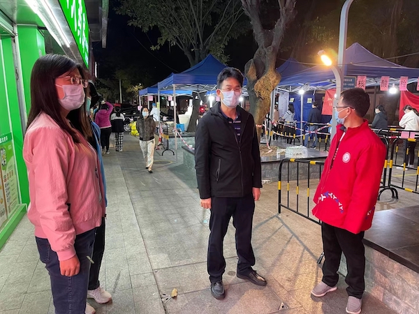 隨后,文促會一行來到了東湖街道大望社區(qū)。在社區(qū)核酸檢測現(xiàn)場,大望社區(qū)黨委書記高桂秀正在指揮現(xiàn)場工作;大望實業(yè)公司董事長何雨聰和大望社區(qū)副書記李雪康兩人都面帶倦容,明顯近期睡眠嚴(yán)重不足。據(jù)了解,高桂秀近期一直綁著護(hù)腰墊片,帶病堅持抗疫。