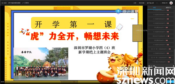 在升旗儀式后,同學(xué)們在線上觀看了奮戰(zhàn)在抗疫一線的老師的工作視頻。隨后,4至6年級的主題班會紛紛開始,圍繞“冬奧會”“學(xué)雷鋒”等內(nèi)容在線上課堂展開熱烈討論。