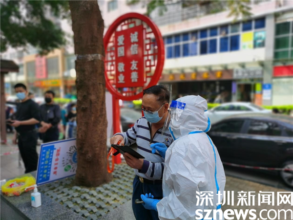 為做好核酸檢測(cè)應(yīng)檢盡檢、愿檢盡檢、不漏一戶、不漏一人。3月5日—6日周末期間,仙湖社區(qū)各核酸檢測(cè)點(diǎn)提前就位,各項(xiàng)檢測(cè)工作正常進(jìn)行。“請(qǐng)來(lái)檢測(cè)核酸的居民朋友,打開(kāi)微信掃一掃場(chǎng)所碼,打卡成功后,切換粵核酸二維碼給工作人員掃碼。接種新冠疫苗48小時(shí)之內(nèi)不能檢測(cè)核酸,謝謝配合?!痹诨ヂ?lián)網(wǎng)產(chǎn)業(yè)園區(qū)的核酸點(diǎn)位,仙湖社區(qū)黨群服務(wù)中心主任劉紅艷腰間圍上裝有試管的袋子,邊掃碼邊宣傳,忙的不亦樂(lè)乎。她說(shuō):“圍著袋子是為了提高掃碼效率,我們每天檢測(cè)7000多人,上千遍都重復(fù)同樣的話,一個(gè)字都不會(huì)錯(cuò)。居民們都很親切的叫我們‘愛(ài)碼士’小分隊(duì),我們也很喜歡這樣的‘愛(ài)稱’”。