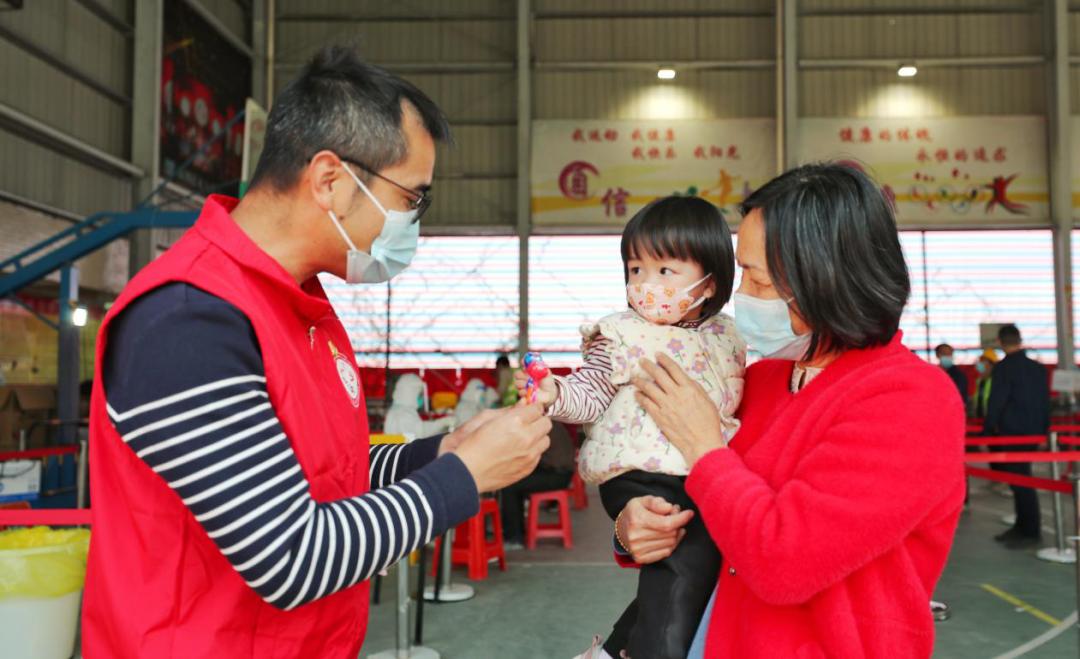 △ 關工委委員吳慶峰安撫剛做完核酸的小朋友
