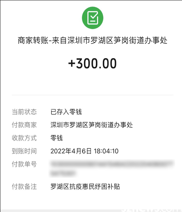 甘心是一名上班族,一家三口在筍崗村居住了5年多。今天下午,他在社區(qū)微信群看到了申領(lǐng)補(bǔ)貼小程序的鏈接,就點(diǎn)了進(jìn)去。只要填姓名,選擇住在哪里,掃描人臉識(shí)別,就完成了申請(qǐng),過(guò)程不到1分鐘?!拔?點(diǎn)多申請(qǐng)的,6點(diǎn)多就拿到了補(bǔ)貼。這太快了!我還以為要審核好幾天呢!”6點(diǎn)多,他收到了一筆來(lái)自筍崗街道辦事處的轉(zhuǎn)賬。300元零錢(qián)直接存入了他的微信錢(qián)包?!疤@喜了,我還沒(méi)有想好怎么花?!备市谋硎?,以微信形式發(fā)放補(bǔ)助對(duì)居民消費(fèi)非常便利,計(jì)劃把這筆錢(qián)用于家庭花銷(xiāo)。