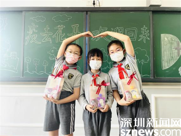 三年級(jí)各班更是個(gè)性十足,旺仔、禮物袋、可吸果凍一應(yīng)俱全,孩子期盼的心被滿滿的愛(ài)充斥著?!皩W(xué)校就是我的家!”